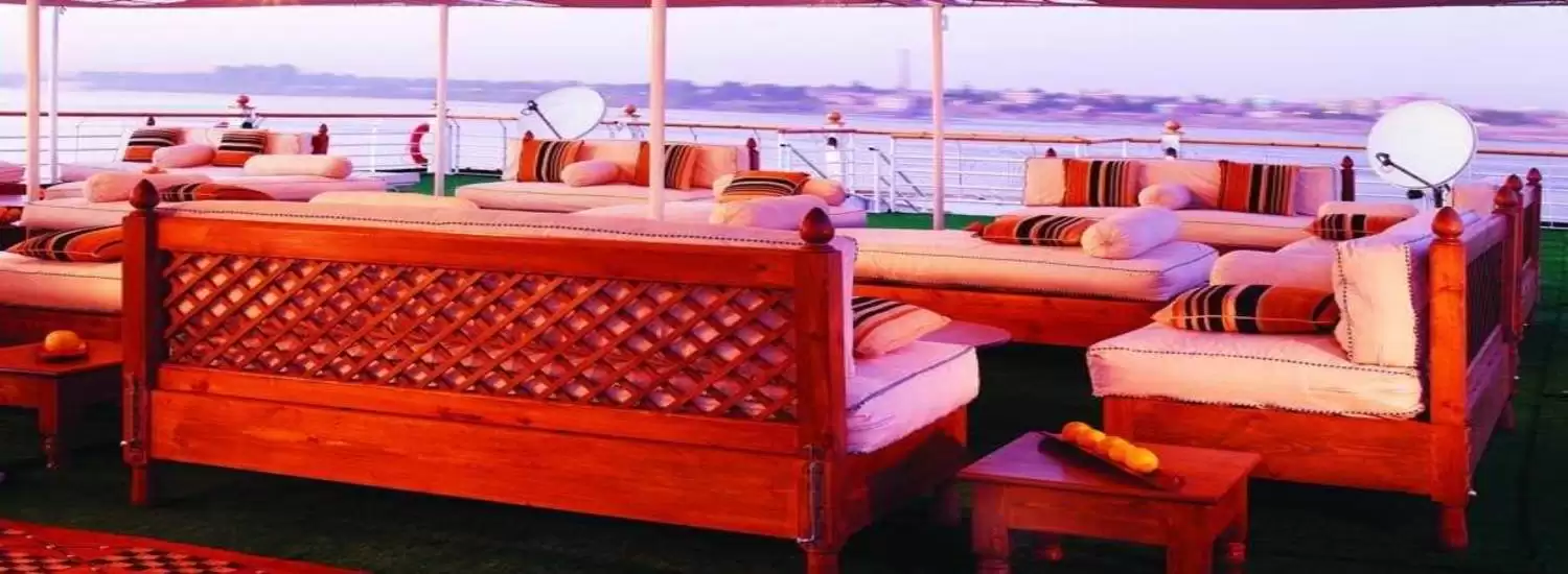 The ship is pleasantly decorated, and has a light, 2-storey reception area. The elegant lounge bar offers guests an open view of the Nile, in addition to a varied entertainment programme including music, shows, galabija parties, belly dancing displays, billiards and a large-screen television. Guests are also welcome to use the selection of fitness equipment on board. The swimming pool, with sun loungers and sun screens, is located on the sundeck. Table tennis can be played at the sundeck too. The ship also has a souvenir shop and 24-hour room and laundry service.
